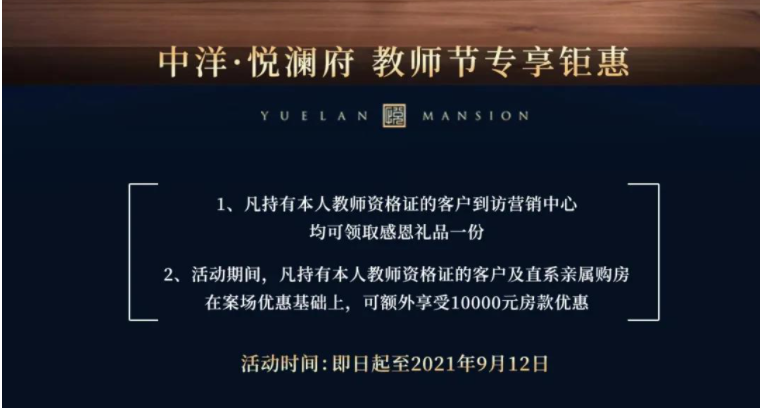 2、活动期间,凡持有本人教师资格证的客户及直系亲属购房,在案场优惠基础上,可额外享受10000元房款优惠。