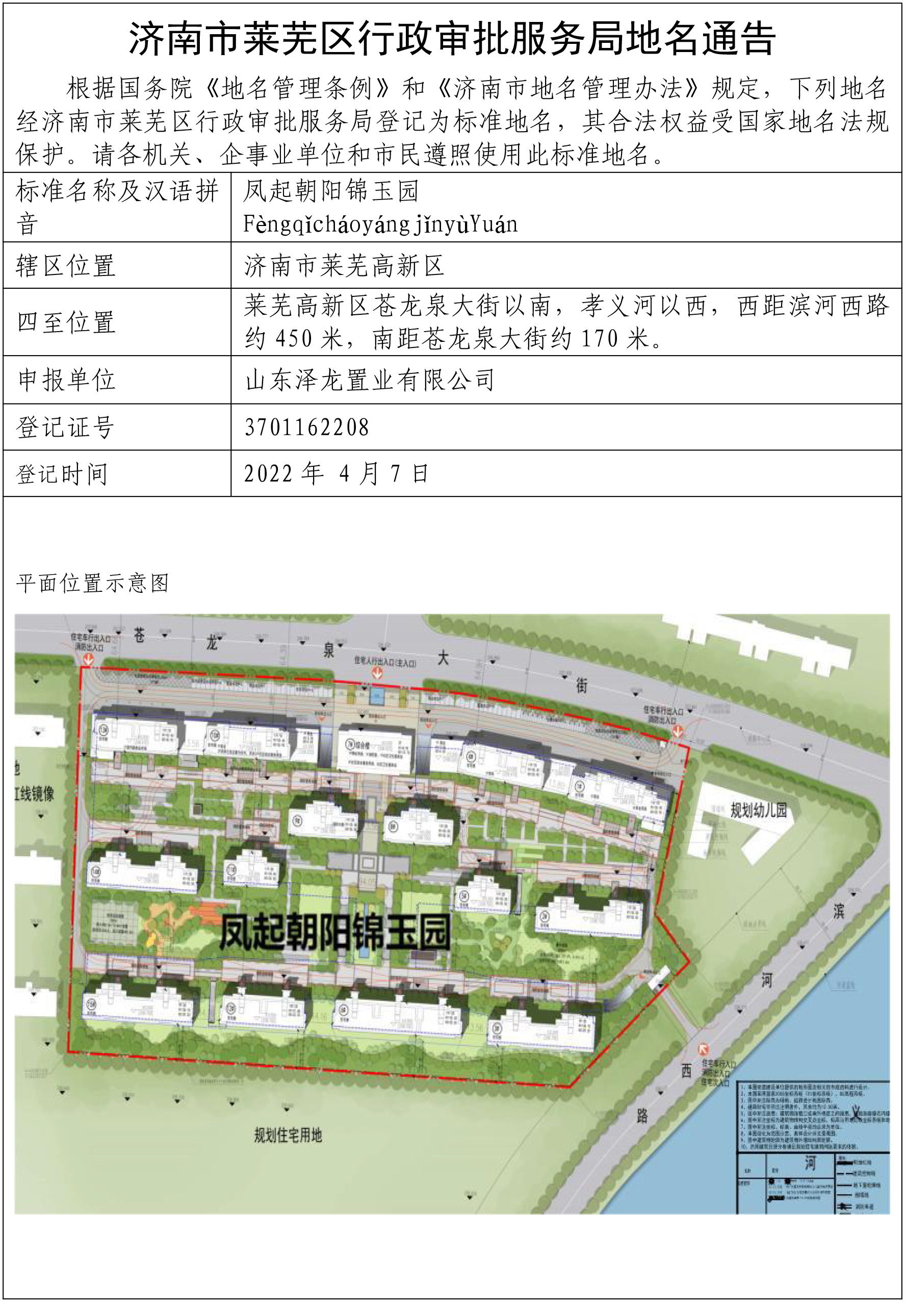根据国务院《地名管理条例》和《济南市地名管理办法》规定,下列地名经济南市莱芜区行政审批服务局登记为标准地名,其合法权益受国家地名法规保护。请各机关,企事业单位和市民遵照使用此标准地名。