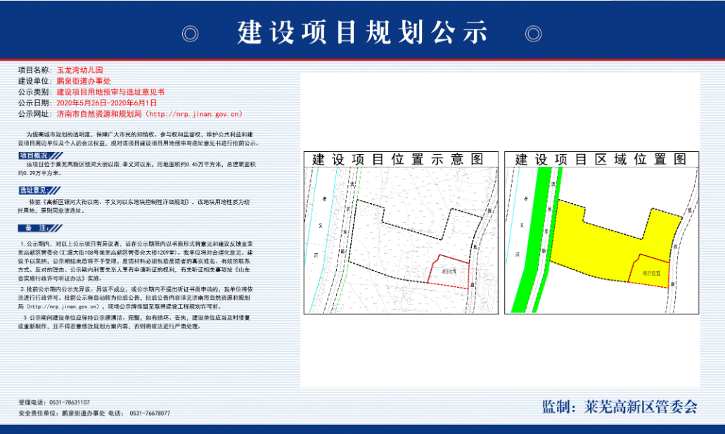 今天陈小陈从济南市自然资源和规划局网站了解到,位于莱芜高新区的玉龙湾项目将新建一所玉龙湾幼儿园,下面跟随陈小陈一起来看一下本项目的具体规划吧。