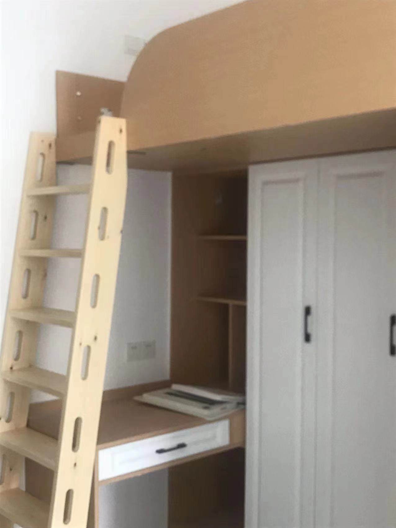 朝阳、地暖、淋浴、洗衣机、厨房设施、网线等设施齐全;配备两张床,其中一张读书休息两用,非常时候陪读。
